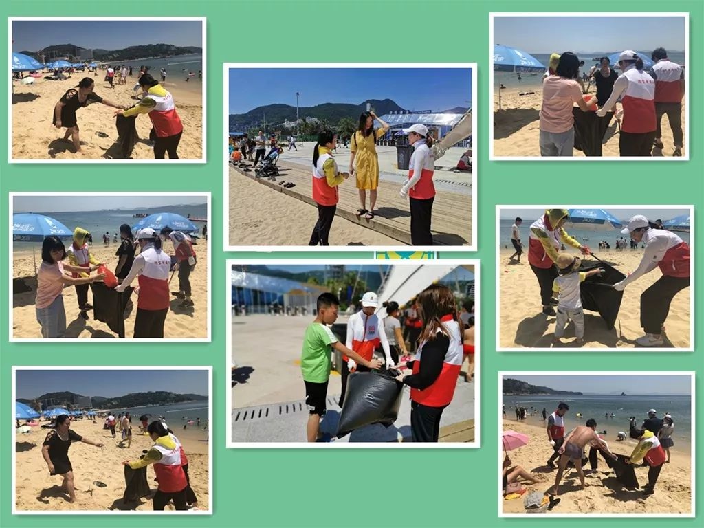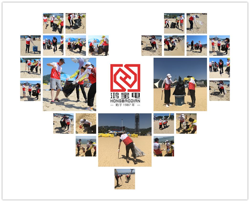 鸿宝电建设环保队伍冒着酷暑,沿着海岸线,一点一点的清理海滩垃圾。鸿宝电建设环保队伍在海滩上捡拾垃圾的身影,形成海边一道亮丽的风景。在一小时的海滩垃圾清理过程当中,环保队伍在如梭的游客间穿行,他们将游客丢弃到海滩上的食品袋、塑料瓶、玻璃碎片、烟头等大量的垃圾收集到手中的垃圾袋当中,然后集中送往海滨公园固定的回收垃圾点。鸿宝电建设环保队伍的行为为海滩上酷暑中的保洁工人,减轻了负担。